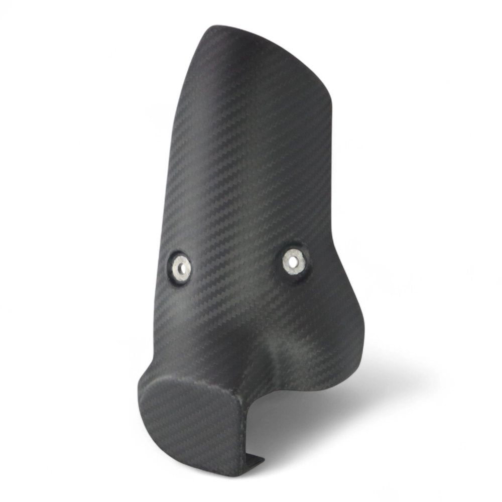 Pour toutes les pièces en carbone qui entrent directement en contact avec le pot d'échappement ou avec des zones fortement chauffées, nous recommandons en principe vivement l'utilisation d'un tapis de protection thermique ou d'une autre isolation thermique appropriée. Ceci est valable même à des températures de fonctionnement normales, car les pièces en carbone ne sont pas équipées en usine d'une protection thermique supplémentaire de l'intérieur, afin de gagner du poids et de garantir un montage parfaitement ajusté.