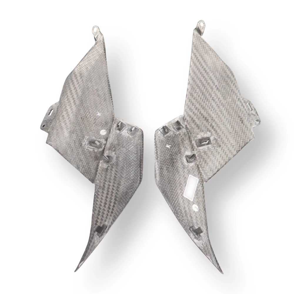 Paire de caches sous réservoir Carbone BMW BMW R1300GS 2024-, livré sans visserie ou autres fixations. Les perçages sont déjà effectués sur les carénages moto en carbone.