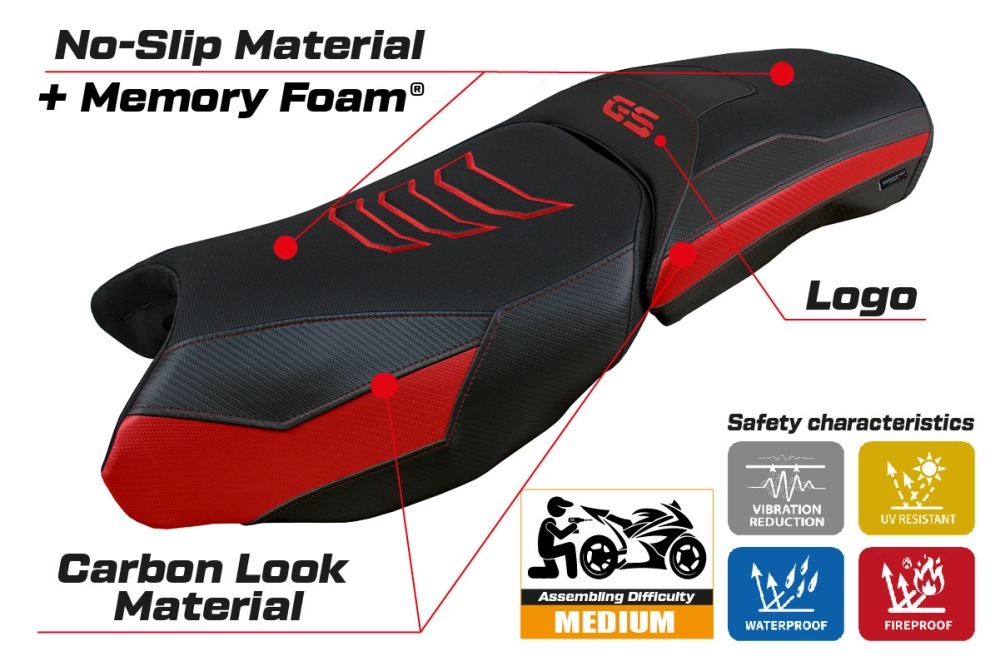 Le Couvre selle Tappezzeria BMW R 1250 GS Adventure (19-24) modèle Perth comfort system vous permet de changer facilement l'esthétique de votre siège de moto d'origine. Il possèdes des caractéristiques techniques essentielles pour une housse de siège moto de qualité : imperméable et résistant au soleil, coutures renforcées à double piqûre et une haute résistance aux produits chimiques.