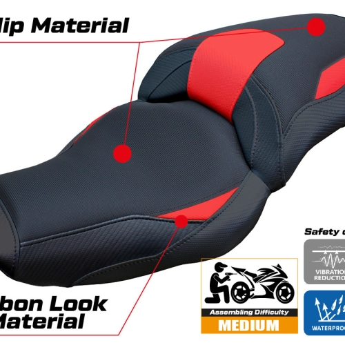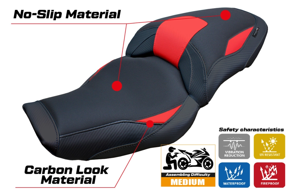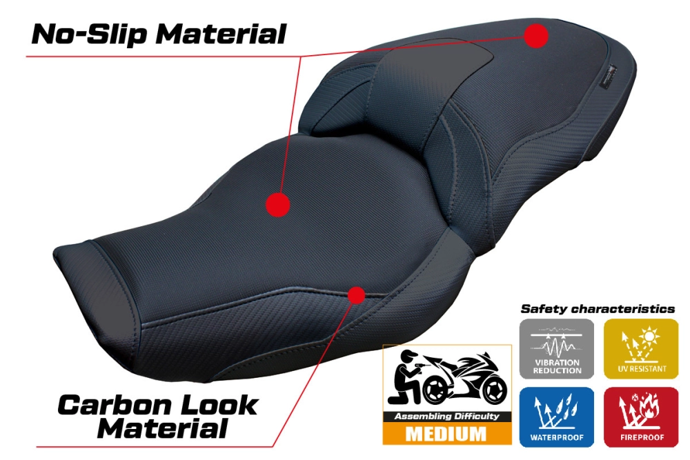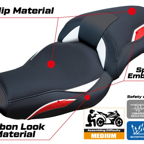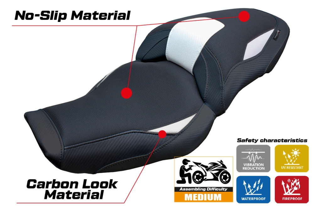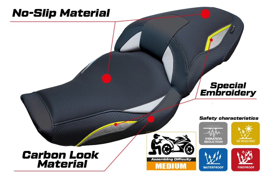 - Confortsystem : Ce revêtement est à l'extérieur exactement identique à tous les autres couvercles, mais est couplé à l'intérieur avec une couche spéciale de 2,5 cm de mousse à mémoire de forme. Tappezzeria Italia est le seul fabricant a utilisé la technologie de la Memory Foam qui permet d'améliorer le confortde conduite en réduisant la fatigue et les vibrations de la moto.