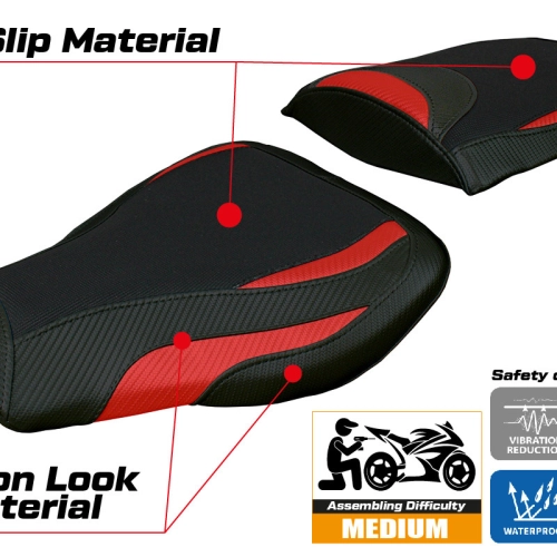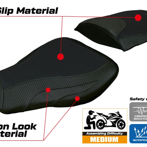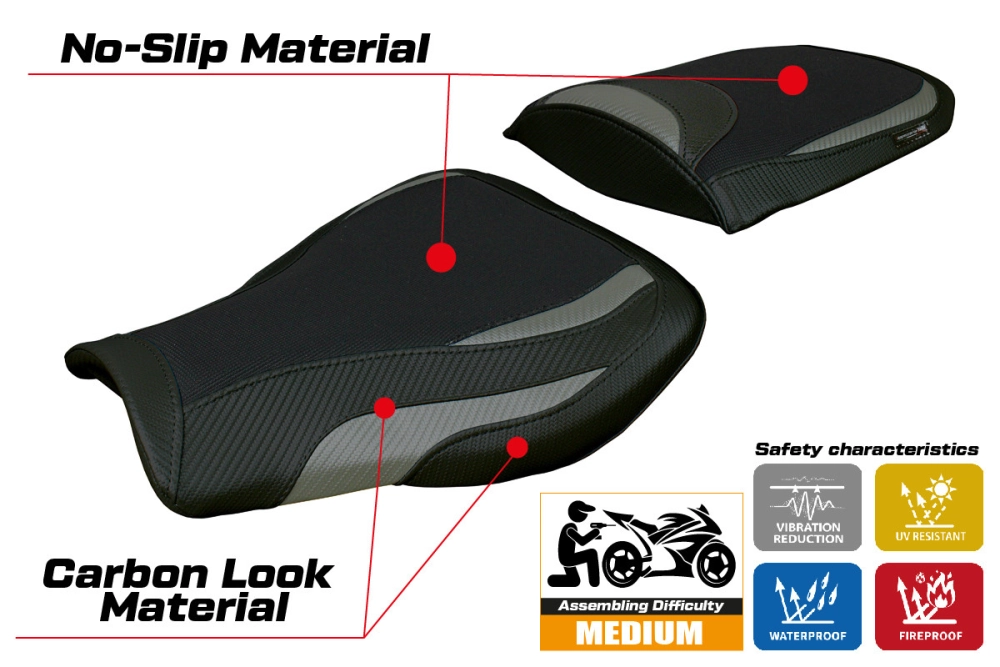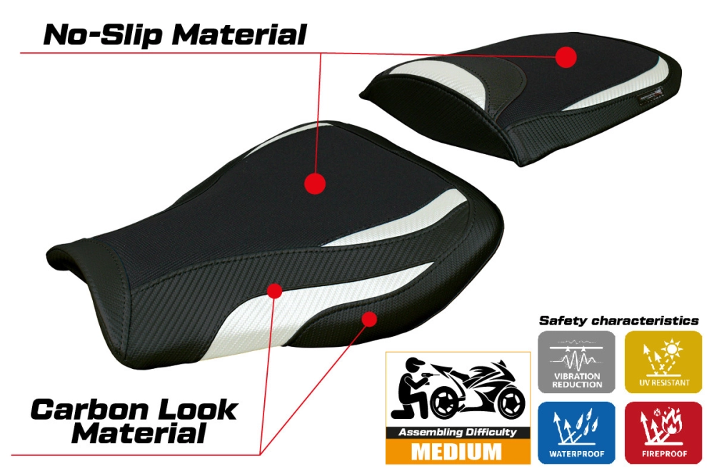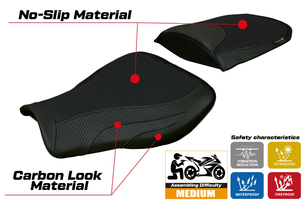 - Confortsystem : Ce revêtement est à l'extérieur exactement identique à tous les autres couvercles, mais est couplé à l'intérieur avec une couche spéciale de 2,5 cm de mousse à mémoire de forme. Tappezzeria Italia est le seul fabricant a utilisé la technologie de la Memory Foam qui permet d'améliorer le confortde conduite en réduisant la fatigue et les vibrations de la moto.