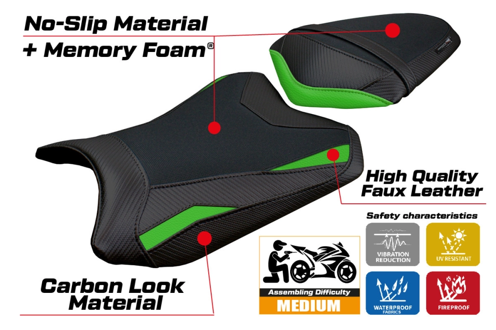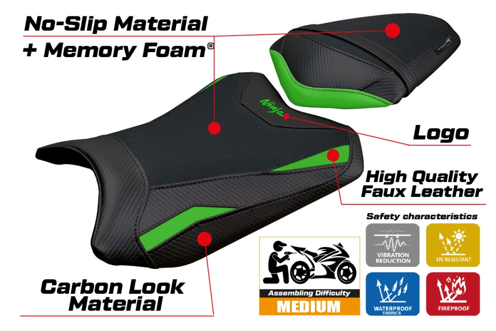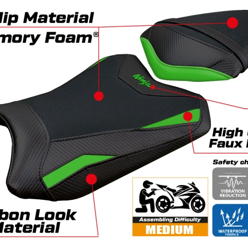 Le Couvre selle Tappezzeria avec Kawasaki Ninja 300 (13-17) modèle Aliko comfort system vous permet de changer facilement l'esthétique de votre siège de moto d'origine. Il possèdes des caractéristiques techniques essentielles pour une housse de siège moto de qualité : imperméable et résistant au soleil, coutures renforcées à double piqûre et une haute résistance aux produits chimiques.