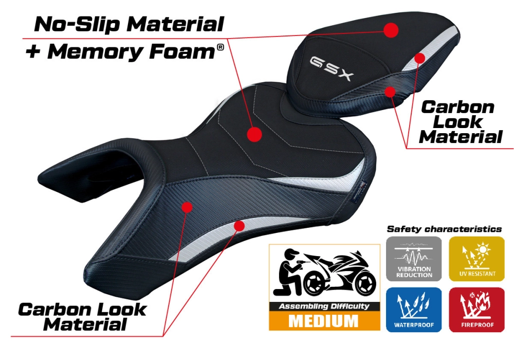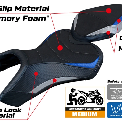 Le Couvre selle Tappezzeria Suzuki GSX 8S / 8R (23-24) modèle Niigata Comfort System vous permet de changer facilement l'esthétique de votre siège de moto d'origine. Il possèdes des caractéristiques techniques essentielles pour une housse de siège moto de qualité : imperméable et résistant au soleil, coutures renforcées à double piqûre et une haute résistance aux produits chimiques.