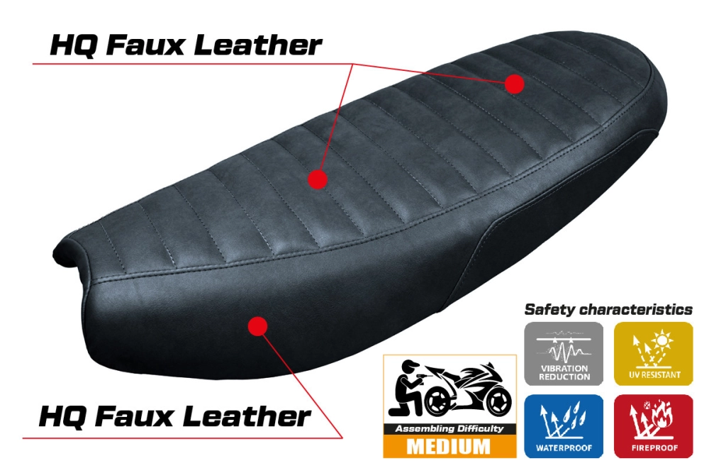 - Confortsystem : Ce revêtement est à l'extérieur exactement identique à tous les autres couvercles, mais est couplé à l'intérieur avec une couche spéciale de 2,5 cm de mousse à mémoire de forme. Tappezzeria Italia est le seul fabricant a utilisé la technologie de la Memory Foam qui permet d'améliorer le confortde conduite en réduisant la fatigue et les vibrations de la moto.