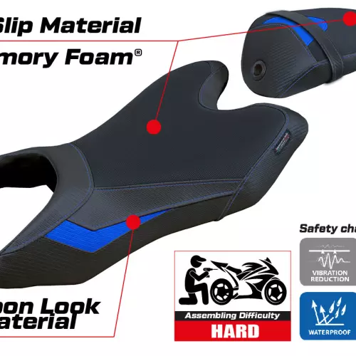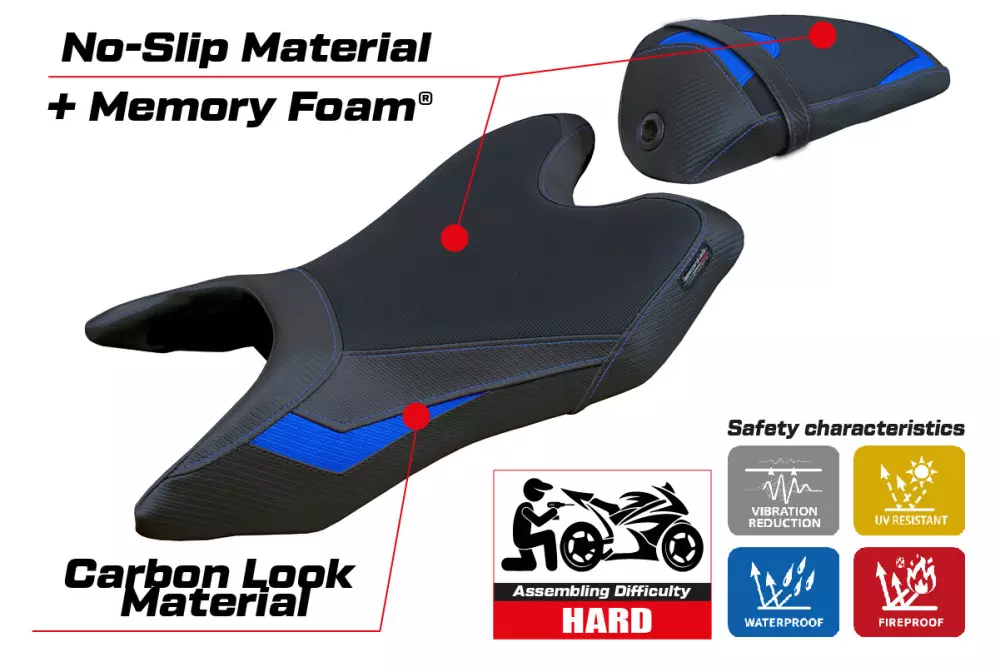 Le Couvre selle Tappezzeria Yamaha R125 (19-23) modèle Aswhy Comfort System vous permet de changer facilement l'esthétique de votre siège de moto d'origine. Il possèdes des caractéristiques techniques essentielles pour une housse de siège moto de qualité : imperméable et résistant au soleil, coutures renforcées à double piqûre et une haute résistance aux produits chimiques.