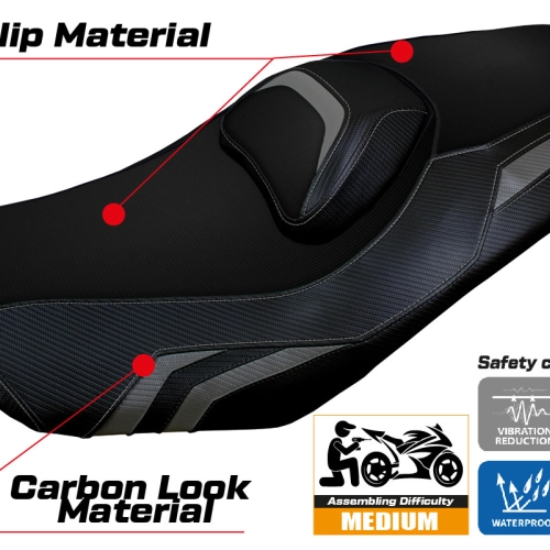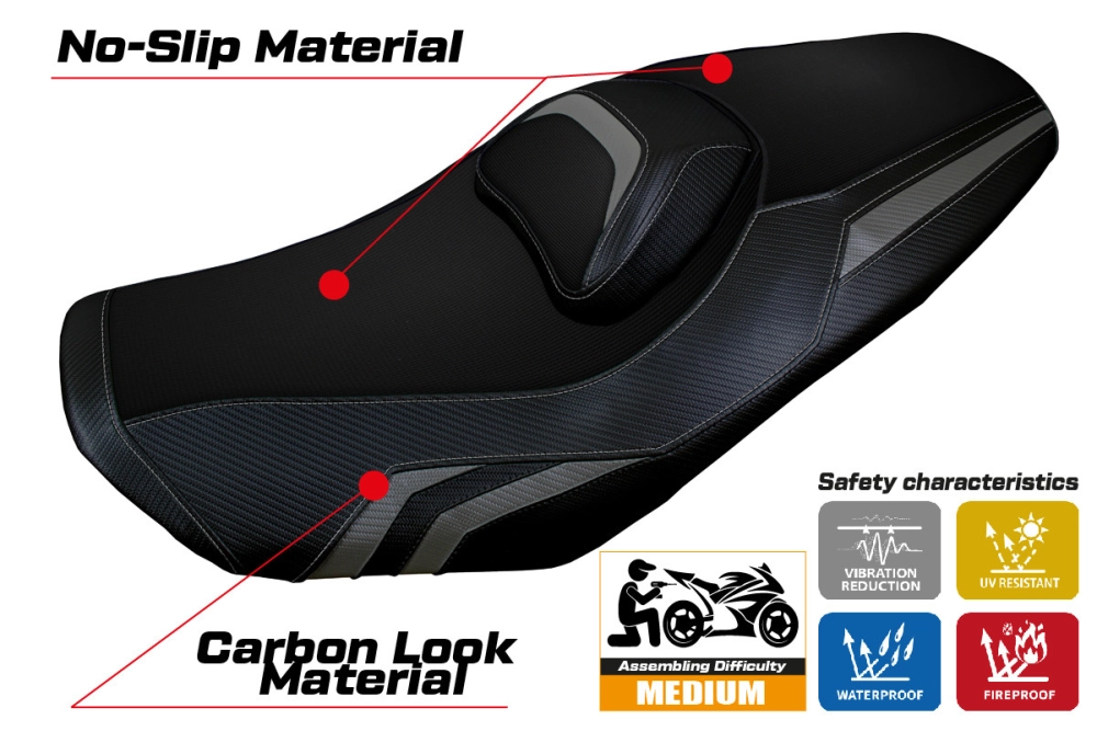 - Ultragrip : Ce type de revêtement est particulièrement adapté aux motos sportives où une plus grande adhérence sur la selle est requise. Le matériau, extrêmement poreux, est surnommé « asphalte » en raison de sa rugosité similaire à celle de la chaussée.