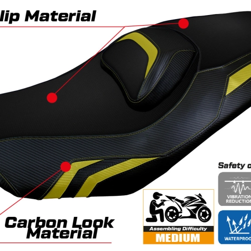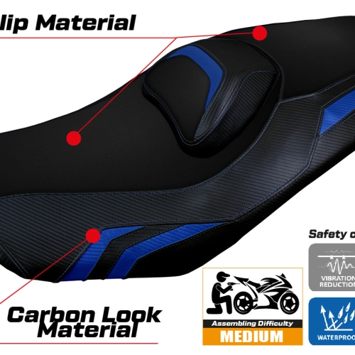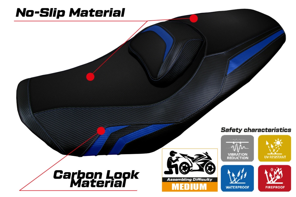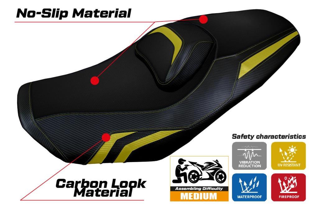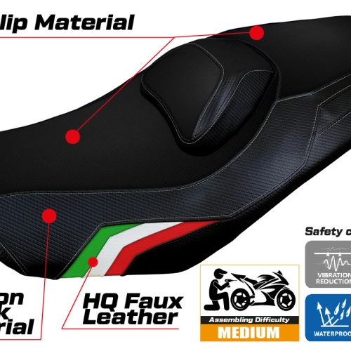 - Confortsystem : Ce revêtement est à l'extérieur exactement identique à tous les autres couvercles, mais est couplé à l'intérieur avec une couche spéciale de 2,5 cm de mousse à mémoire de forme. Tappezzeria Italia est le seul fabricant a utilisé la technologie de la Memory Foam qui permet d'améliorer le confortde conduite en réduisant la fatigue et les vibrations de la moto.