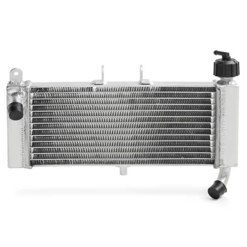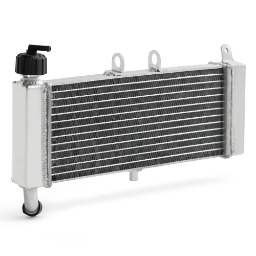 Ce radiateur est conçu pour offrir un refroidissement solide et rapide de votre moto, même dans des conditions extrêmes. Son noyau en aluminium est soudé sous vide, garantissant une étanchéité parfaite et une résistance accrue face aux surtensions thermiques, notamment en usage compétition.