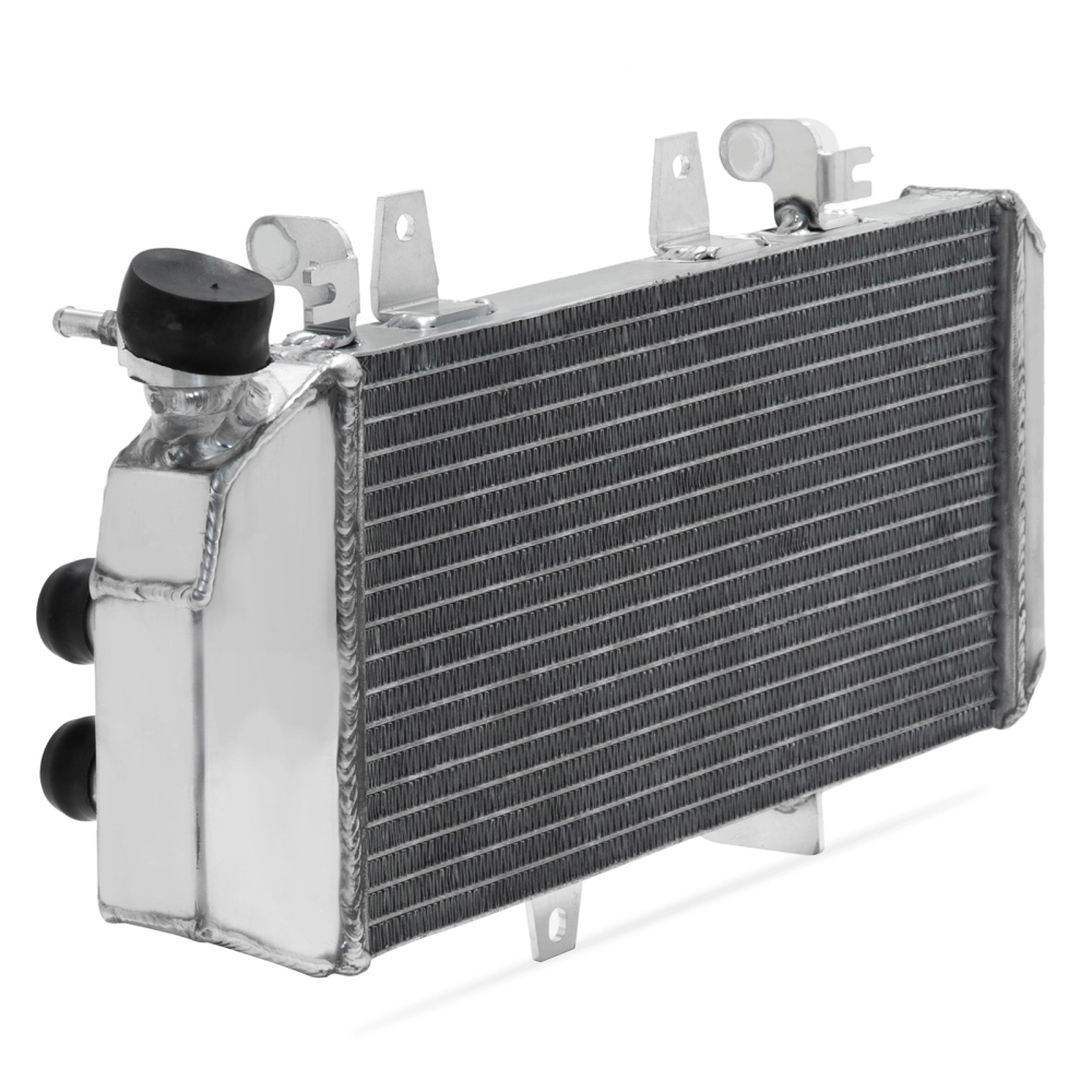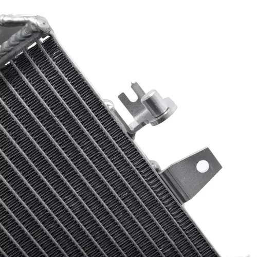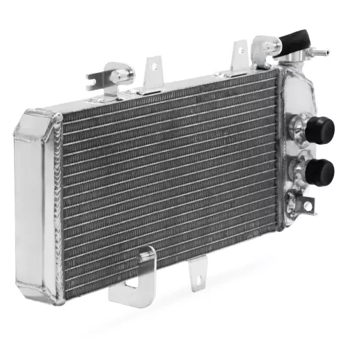 Ce radiateur est conçu pour offrir un refroidissement solide et rapide de votre moto, même dans des conditions extrêmes. Son noyau en aluminium est soudé sous vide, garantissant une étanchéité parfaite et une résistance accrue face aux surtensions thermiques, notamment en usage compétition.