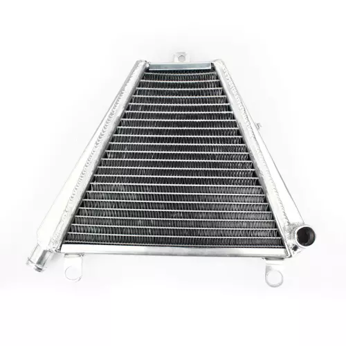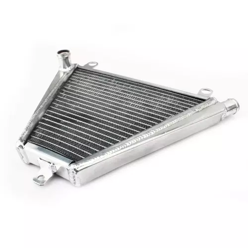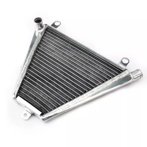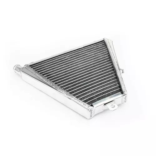 Ce radiateur est conçu pour offrir un refroidissement solide et rapide de votre moto, même dans des conditions extrêmes. Son noyau en aluminium est soudé sous vide, garantissant une étanchéité parfaite et une résistance accrue face aux surtensions thermiques, notamment en usage compétition.