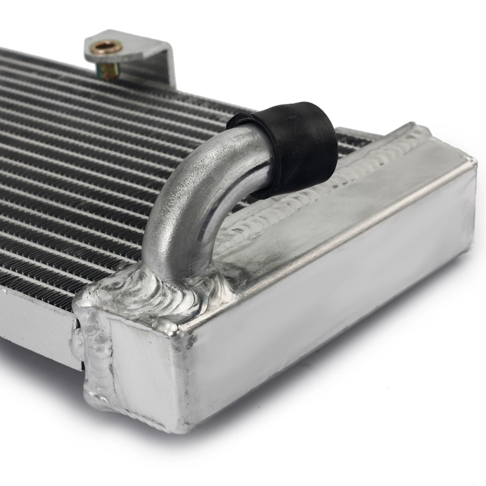 Ce radiateur est conçu pour offrir un refroidissement solide et rapide de votre moto, même dans des conditions extrêmes. Son noyau en aluminium est soudé sous vide, garantissant une étanchéité parfaite et une résistance accrue face aux surtensions thermiques, notamment en usage compétition.