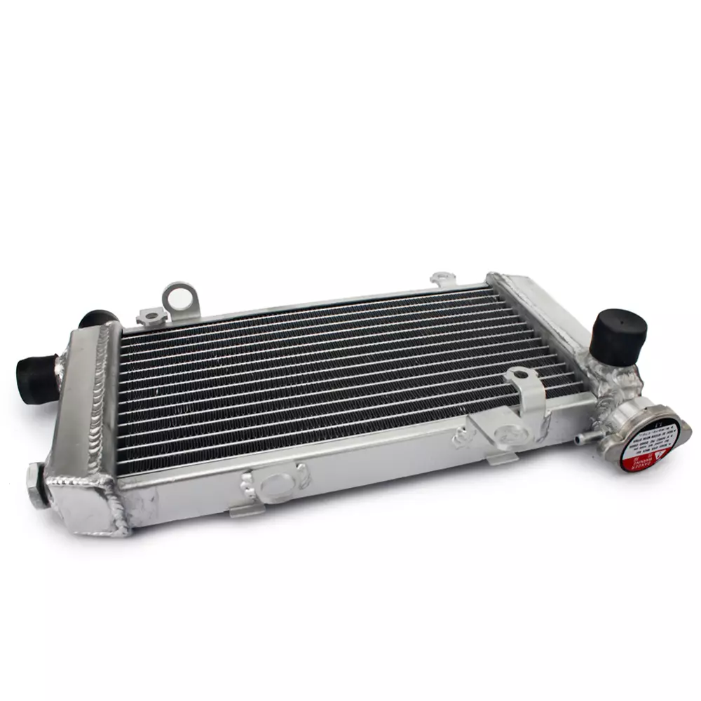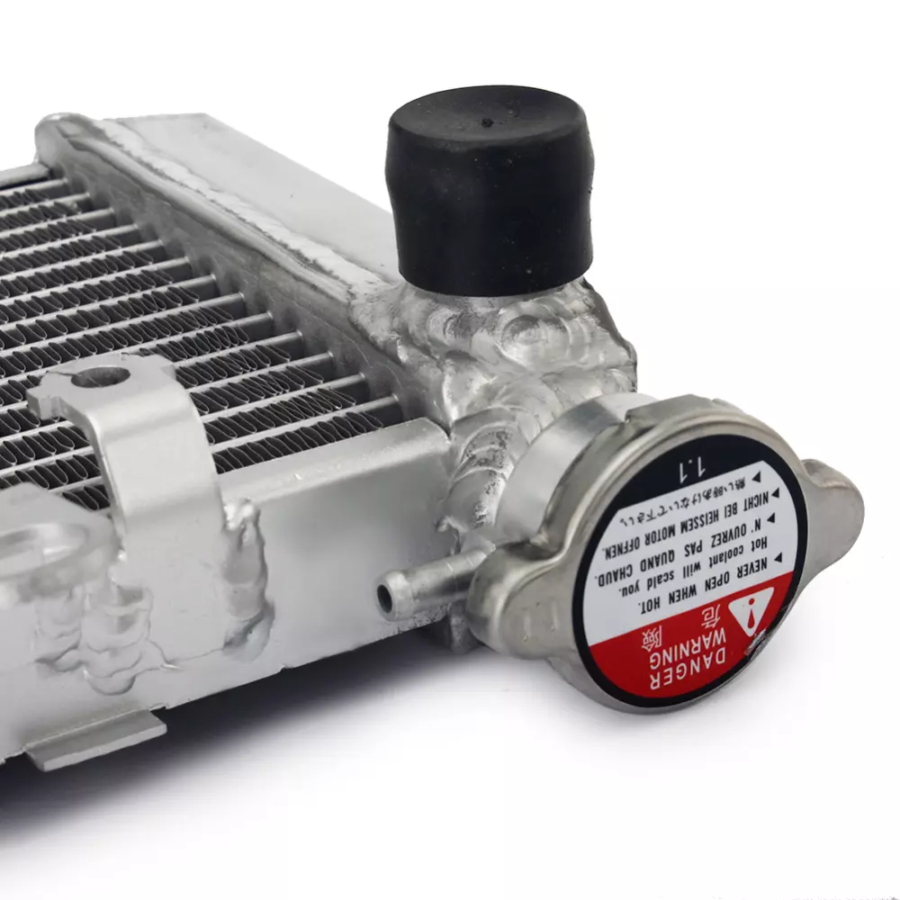 Ce radiateur est conçu pour offrir un refroidissement solide et rapide de votre moto, même dans des conditions extrêmes. Son noyau en aluminium est soudé sous vide, garantissant une étanchéité parfaite et une résistance accrue face aux surtensions thermiques, notamment en usage compétition.