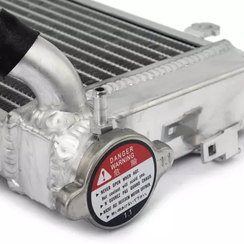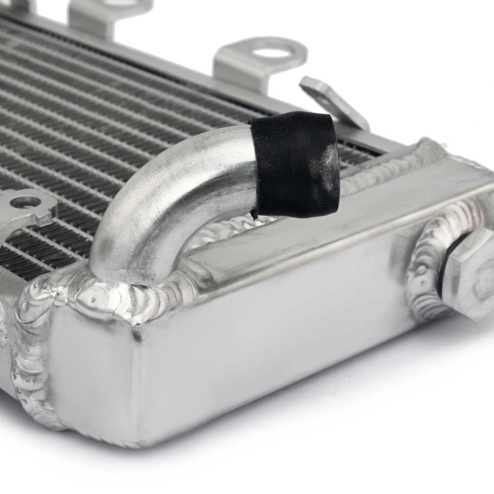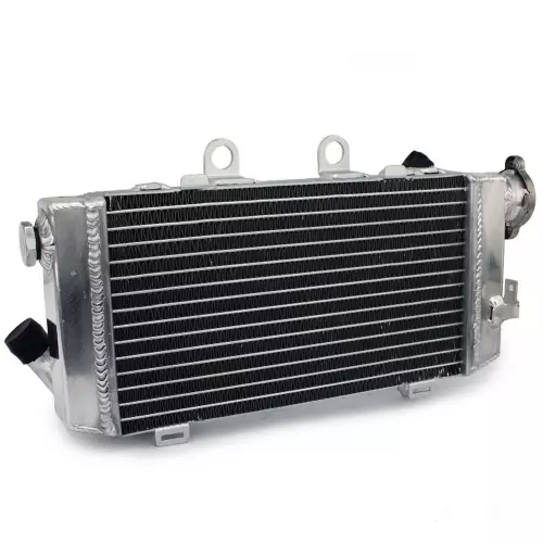 Ce radiateur est conçu pour offrir un refroidissement solide et rapide de votre moto, même dans des conditions extrêmes. Son noyau en aluminium est soudé sous vide, garantissant une étanchéité parfaite et une résistance accrue face aux surtensions thermiques, notamment en usage compétition.