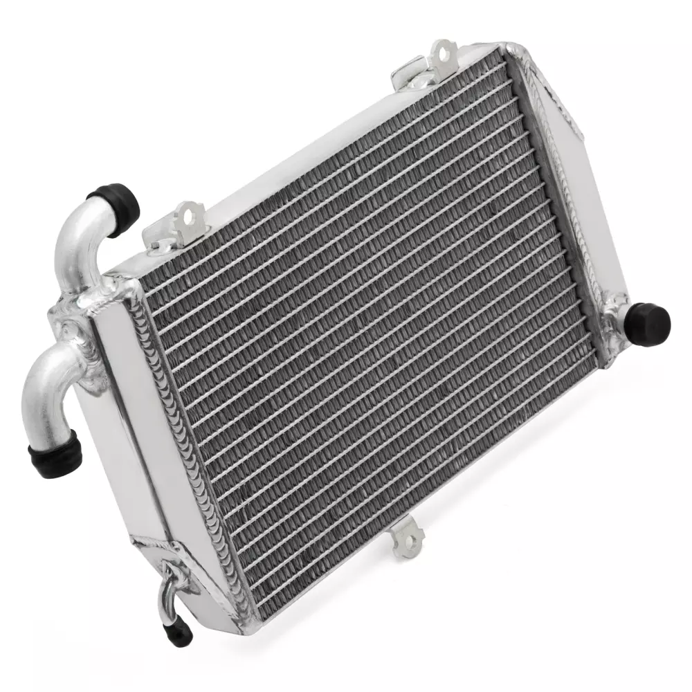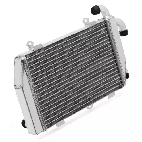 Ce radiateur est conçu pour offrir un refroidissement solide et rapide de votre moto, même dans des conditions extrêmes. Son noyau en aluminium est soudé sous vide, garantissant une étanchéité parfaite et une résistance accrue face aux surtensions thermiques, notamment en usage compétition.