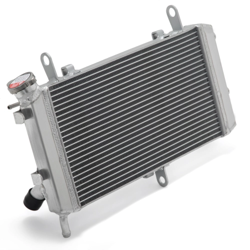 Ce radiateur est conçu pour offrir un refroidissement solide et rapide de votre moto, même dans des conditions extrêmes. Son noyau en aluminium est soudé sous vide, garantissant une étanchéité parfaite et une résistance accrue face aux surtensions thermiques, notamment en usage compétition.