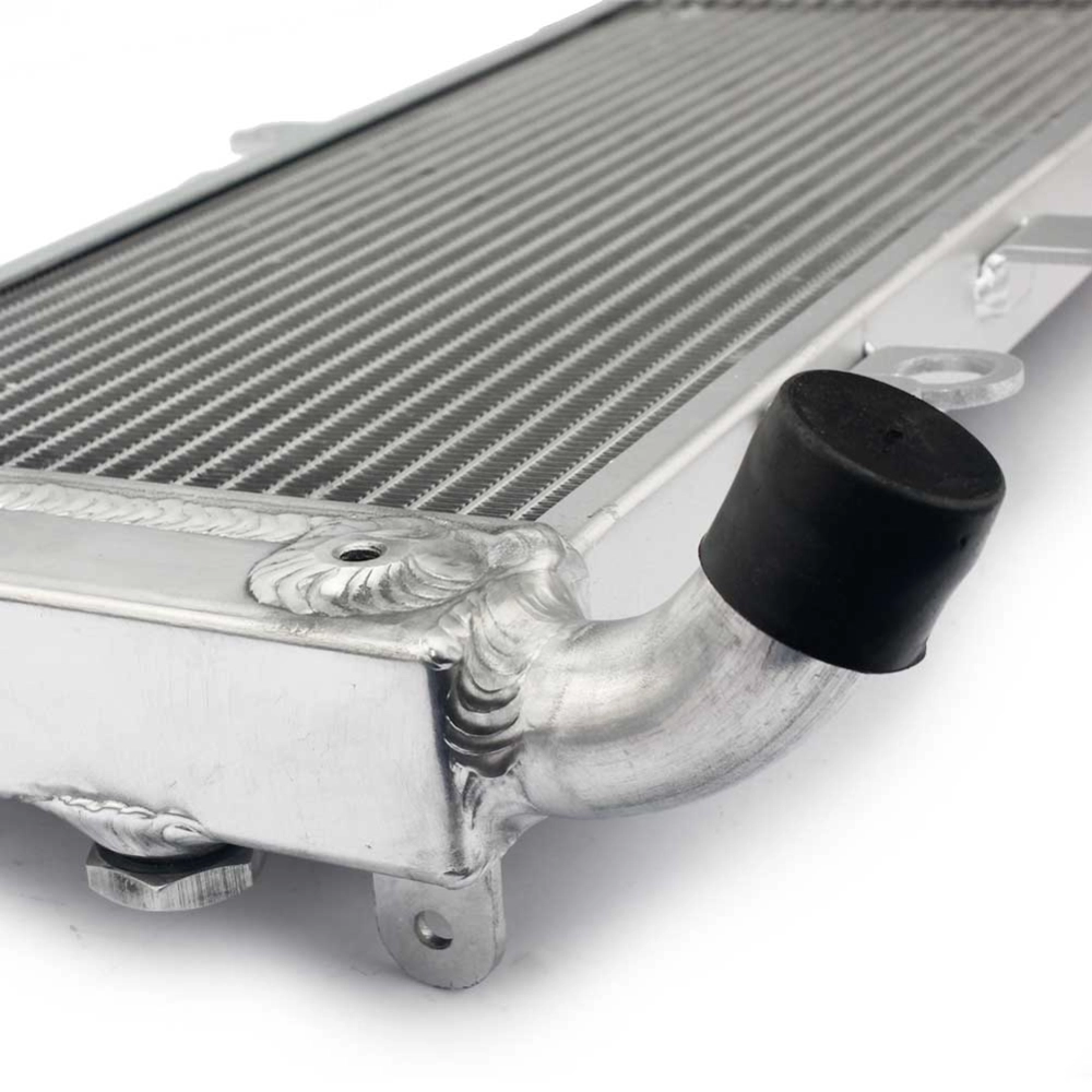 Ce radiateur est conçu pour offrir un refroidissement solide et rapide de votre moto, même dans des conditions extrêmes. Son noyau en aluminium est soudé sous vide, garantissant une étanchéité parfaite et une résistance accrue face aux surtensions thermiques, notamment en usage compétition.