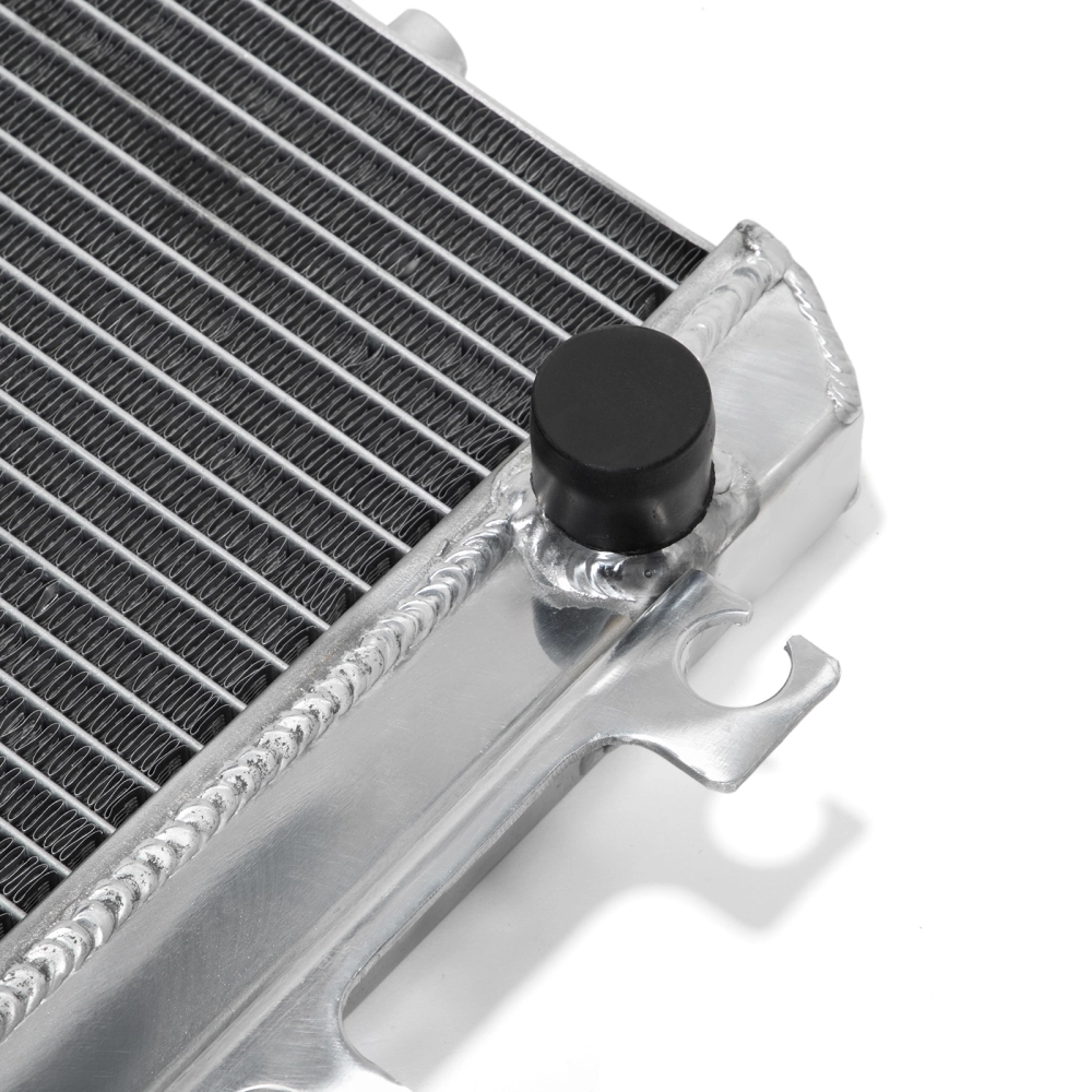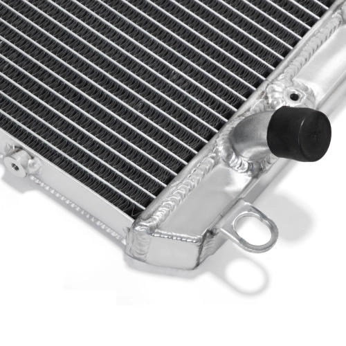 Ce radiateur est conçu pour offrir un refroidissement solide et rapide de votre moto, même dans des conditions extrêmes. Son noyau en aluminium est soudé sous vide, garantissant une étanchéité parfaite et une résistance accrue face aux surtensions thermiques, notamment en usage compétition.