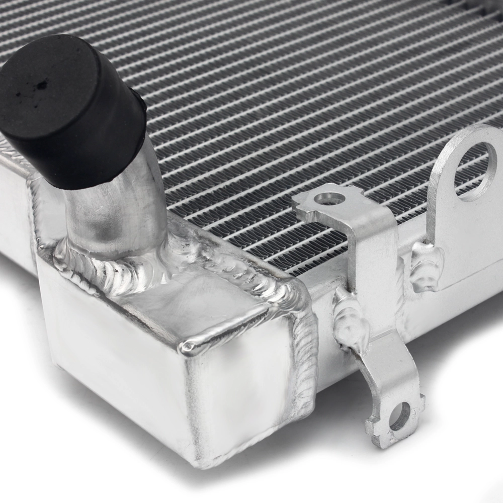 Ce radiateur est conçu pour offrir un refroidissement solide et rapide de votre moto, même dans des conditions extrêmes. Son noyau en aluminium est soudé sous vide, garantissant une étanchéité parfaite et une résistance accrue face aux surtensions thermiques, notamment en usage compétition.