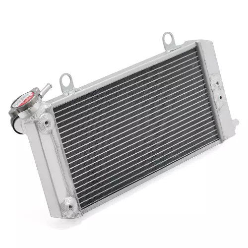 Ce radiateur est conçu pour offrir un refroidissement solide et rapide de votre moto, même dans des conditions extrêmes. Son noyau en aluminium est soudé sous vide, garantissant une étanchéité parfaite et une résistance accrue face aux surtensions thermiques, notamment en usage compétition.