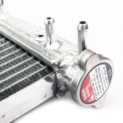 Ce radiateur est conçu pour offrir un refroidissement solide et rapide de votre moto, même dans des conditions extrêmes. Son noyau en aluminium est soudé sous vide, garantissant une étanchéité parfaite et une résistance accrue face aux surtensions thermiques, notamment en usage compétition.
