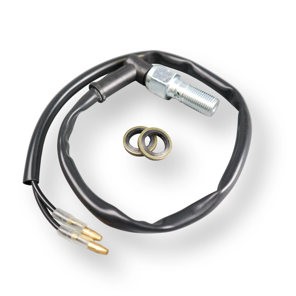 Nous avons la solution idéale pour vous ! Nous vous proposons un dispositif simple, efficace et de qualité, conçu pour faciliter l'intégration de votre contacteur de feux stop. Il vous suffit de remplacer le banjo directement sur la durite de frein. Cette solution permet une installation rapide et sans complications.