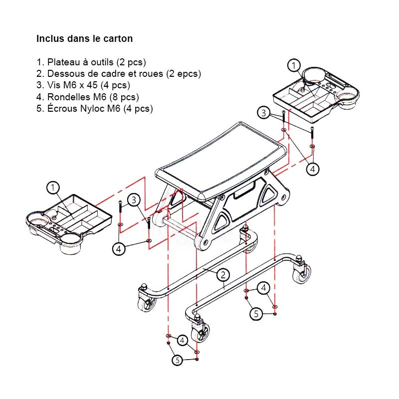 Travaillez sur votre moto en toute simplicité grâce à ce tabouret sur roulettes, conçu pour maximiser votre confort. Avec son bac de rangement intégré, gardez vos petites pièces toujours à portée de main, sans perdre de temps à les chercher.