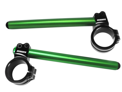 Paire demi guidons Accossato, version racing avec inclinaison fixe de 10°, tube désaxé de 10 mm par rapport au centre du bracele et un bracelet avec une bague diamètre de 50mm.