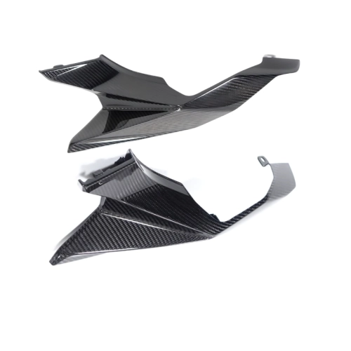 Carénages arrières carbone BMW M 1000 XR 2024+, livré sans visserie ou autres fixations. Les perçages sont déjà effectués sur les carénages moto en carbone.