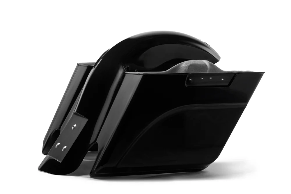 Vous recherchez une construction personnalisée unique ? Ces sacoches étendues de 5" vers le bas et leur garde-boue assorti (adaptés pour des embouts de silencieux ronds jusqu’à 4,5") s’adaptent parfaitement à votre bagger personnalisé avec une roue avant de 19", 21", 23" ou 26". Elles se montent sur votre moto de la même manière que vos sacoches et garde-boue d'origine. Il vous suffit de transférer votre matériel de montage existant et vos couvercles vers les nouvelles sacoches allongées.