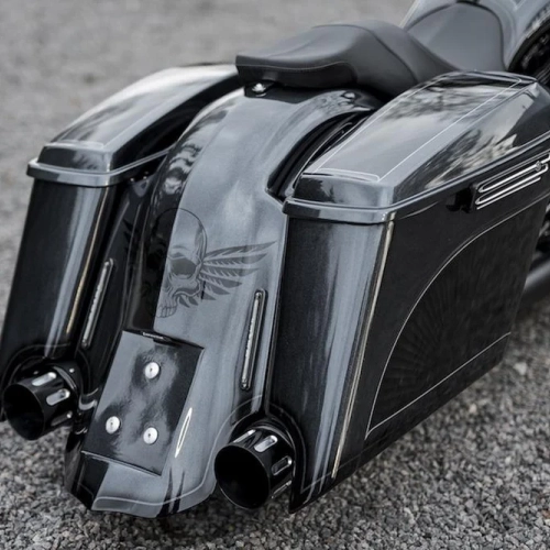 Vous cherchez à créer une moto sur mesure unique ? Ces sacoches étendues de 5" vers le bas et leur garde-boue assorti (compatibles avec des embouts de silencieux ronds jusqu'à 4,5") s’adaptent parfaitement à votre bagger personnalisé équipé d'une roue avant de 19", 21", 23" ou 26". Elles se montent de la même manière que vos sacoches et garde-boue d'origine. Il vous suffit de transférer votre matériel de montage et vos couvercles existants sur les nouvelles sacoches allongées.