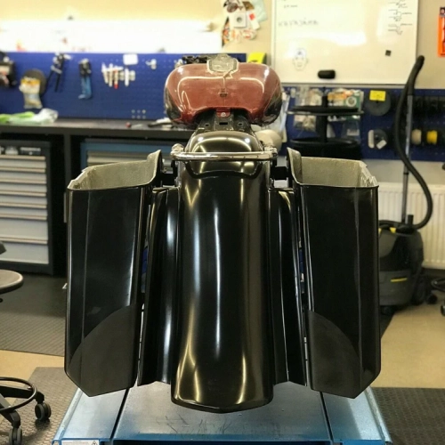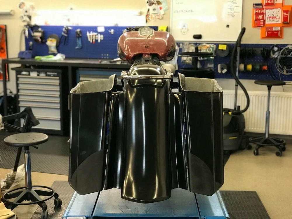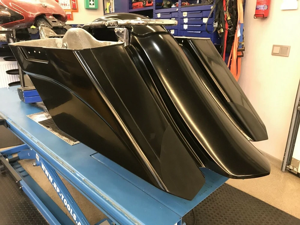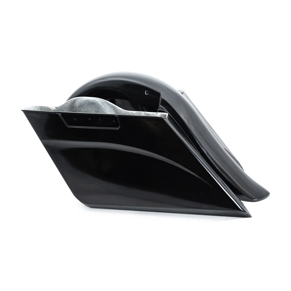 Vous cherchez à créer une moto sur mesure unique ? Ces sacoches allongées de 5" vers le bas et de 7" étendues, ainsi que leur garde-boue assorti, s’adaptent parfaitement à votre bagger personnalisé équipé d’une roue avant de 21", 23" ou 26". Elles se montent de la même manière que vos sacoches et garde-boue d'origine. Il vous suffit de transférer votre matériel de montage et vos couvercles existants sur les nouvelles sacoches étendues.