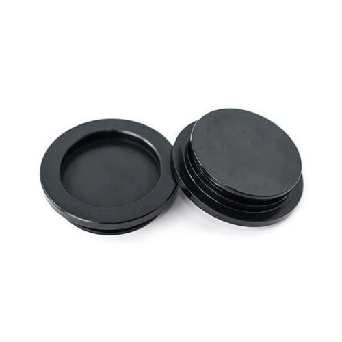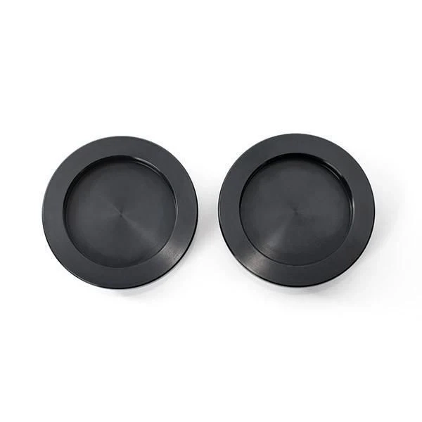 Installation facile par pression. Anodisé noir. Vendu par paire.