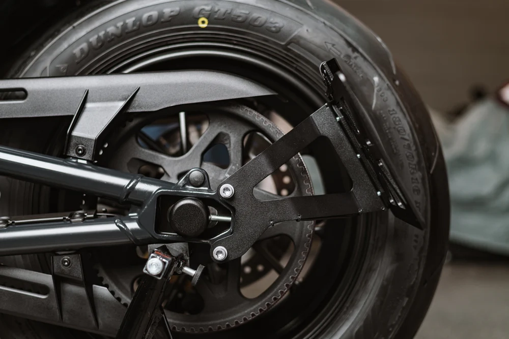 Nouveau support latéral de plaque d'immatriculation en acier conçu pour remplacer le support d'origine peu esthétique. Le porte-plaque monté sur le côté se fixe sur le côté gauche du bras oscillant. Le support de plaque en acier avec finition noire en poudre fonctionne parfaitement avec nos supports de plaque de tailles personnalisées. Le support de plaque de taille personnalisée est vendu séparément en fonction de la taille de votre plaque d'immatriculation.