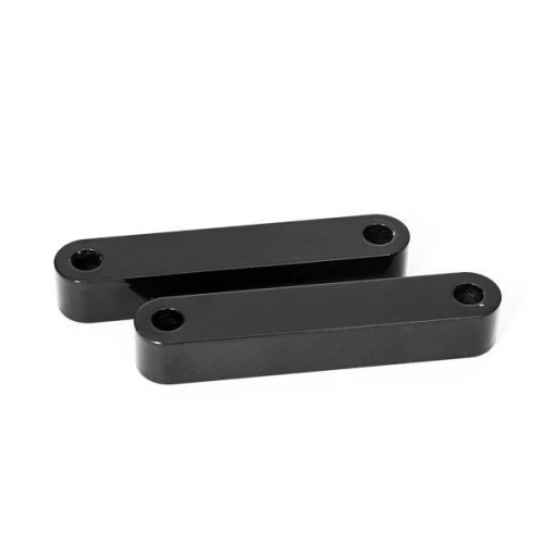 Un nouveau jeu de spacers en aluminium noir pour les modèles Touring Harley-Davidson. Dimensions : (0,6" de largeur) x (3,9" de longueur) x (0,7" de hauteur). Fabriqué en aluminium brut usiné CNC. Compatible avec des vis de 5/16" et des trous espacés de 3".