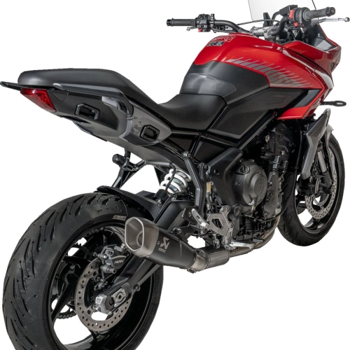 Ligne à installation rapide ne demandant pas de changement de cartographie, réservée à la conduite sur pistes de course et circuits fermés. Elle ne peut pas être combinée avec les diabolos de béquille de stand type paddock Triumph, mais peut en revanche être utilisée avec les pièces plastiques inférieures de carénage Triumph ; ces deux produits sont des accessoires d’origine. 18611779 requis pour Tiger Sport 660 / 18611786 requis pour Trident 660 / 18611778 requis pour Daytona 660.