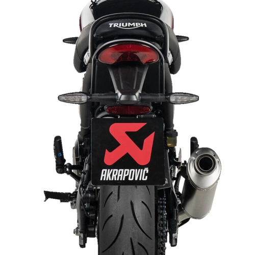 Silencieux slip-on Akrapovic pour TRIUMPH Speed 400 23-24 / Scrambler 400 X 23-24. Le style néo-rétro se base sur une conception de silencieux apparue il y a trente ans. Ce Silencieux slip-on Akrapovic Line (en titane) se fond merveilleusement dans les lignes de la moto. Enveloppe extérieure en titane sablé de haute qualité et tube de liaison, embout comportant des empreintes, pare-chaleur et structure interne en acier inoxydable. Autocollant avec logo noir et blanc en guise de finition ; avec pare-chaleur pour éviter de brûler ou d’ab&îcirc;mer l’équipement du pilote. Au cours de la phase de développement, la priorité a été donnée à la réponse à l’ouverture des gaz et aux performances. Accro&îcirc;t la puissance de 0,7 kW (1 ch) et le couple de 1,9 Nm à 6 500 tr/min, selon les tests réalisés sur banc d’essai Akrapovic le comparant à une ligne d’échappement d’usine standard montée sur un modèle Triumph. Les matériaux légers permettent de réduire le poids de 39,5 % (1,3 kg) par rapport à l’échappement d’origine standard. Homologation CE/CEE-ONU ; montage aisé et rapide, sans qu’il y ait besoin de changer de cartographie.