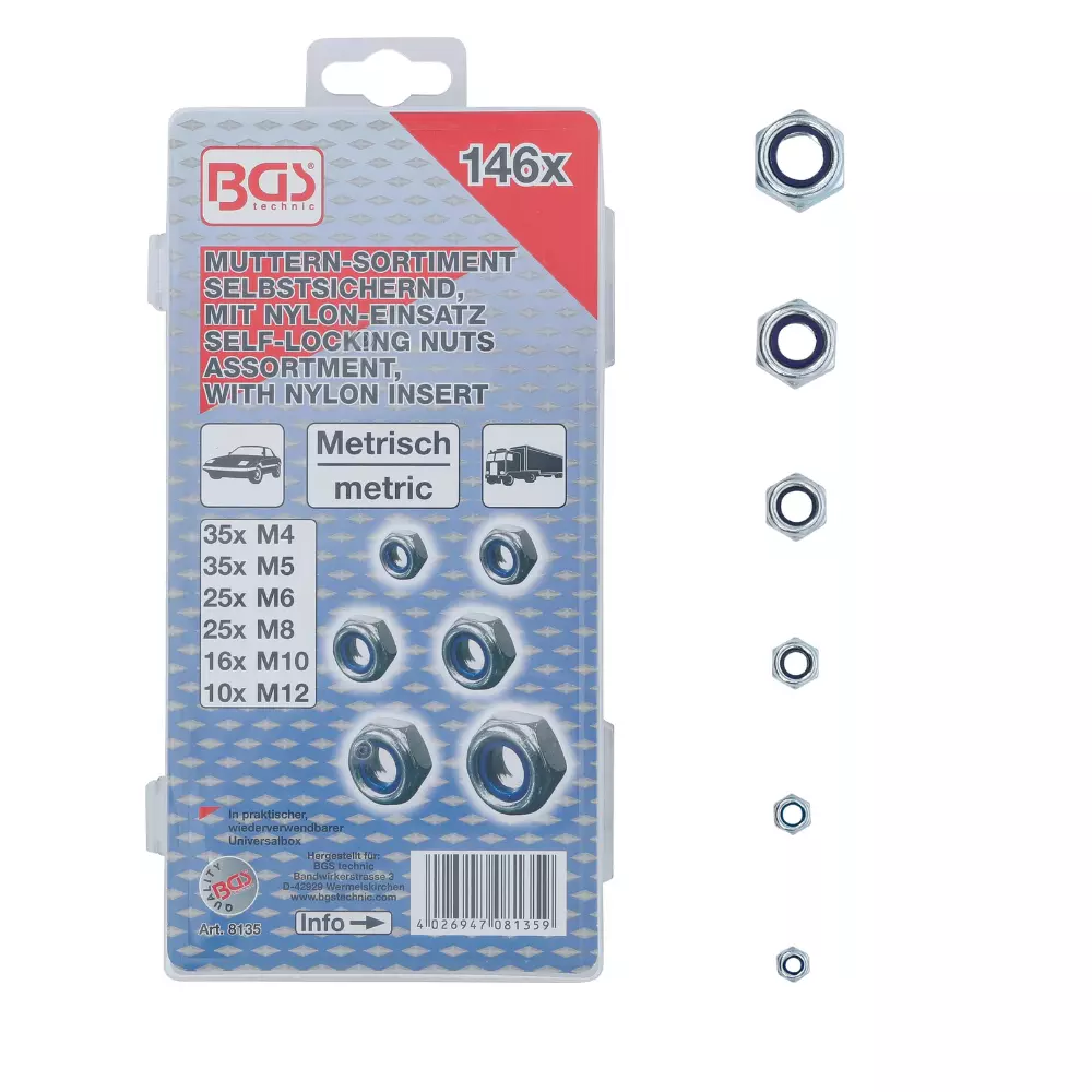 Assortiment d’écrous six pans | nilstop | 146 pièces BGS