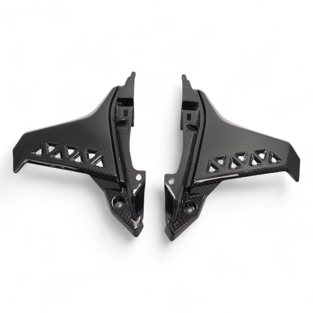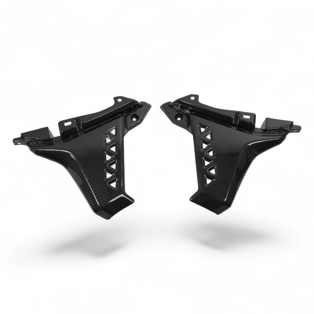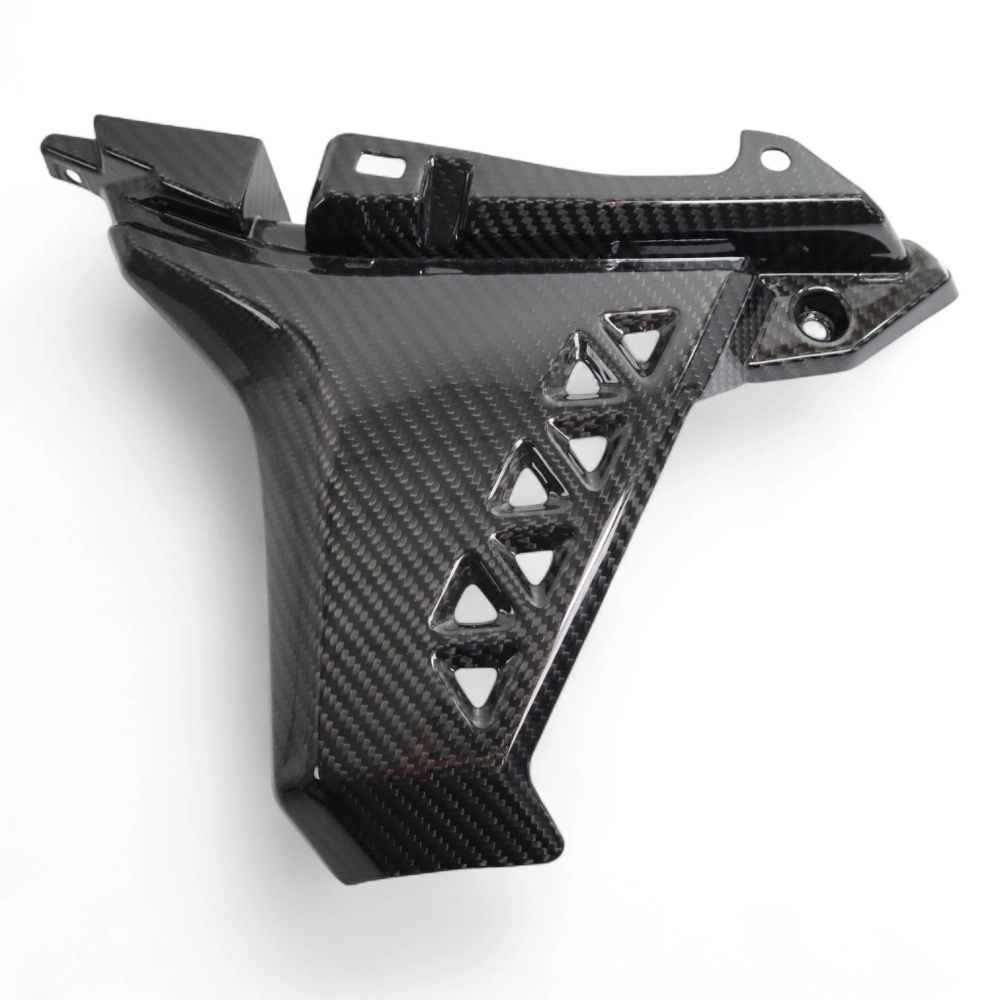 Partie basse écope latérale carbone Suzuki GSX 8S, livré sans visserie ou autres fixations. Les perçages sont déjà effectués sur les carénages moto en carbone.