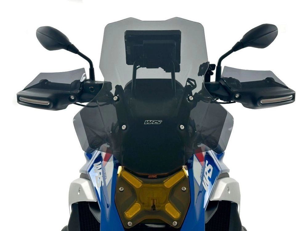Kit d'extension WRS pour protège-mains BMW R1300GS Fumée Noir. Protège-mains fabriqués avec des matériaux de haute qualité, épaisseur 2 mm. 3 cm plus haut et 3 cm plus large que l'original.