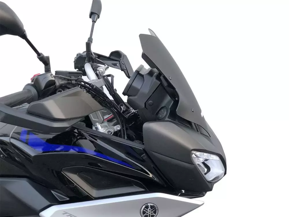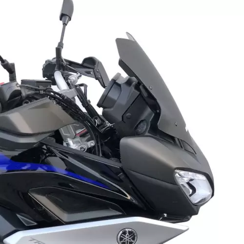 Bulle WRS Sport Yamaha MT09 TRACER Noir Mat réalisée en plexiglas PMMA de haute qualité. Les turbulences gênantes sur les épaules et le casque sont éliminées. Protection accrue offerte par la bulle. S'intègre parfaitement à la ligne de la moto pour un look encore plus attrayant.