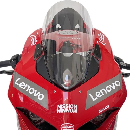 Bulle WRS Sport Ducati PANIGALE V4/S Transparente réalisée en plexiglas PMMA de haute qualité. Les turbulences gênantes sur les épaules et le casque sont éliminées. Protection accrue offerte par la bulle. S'intègre parfaitement à la ligne de la moto pour un look encore plus attrayant.