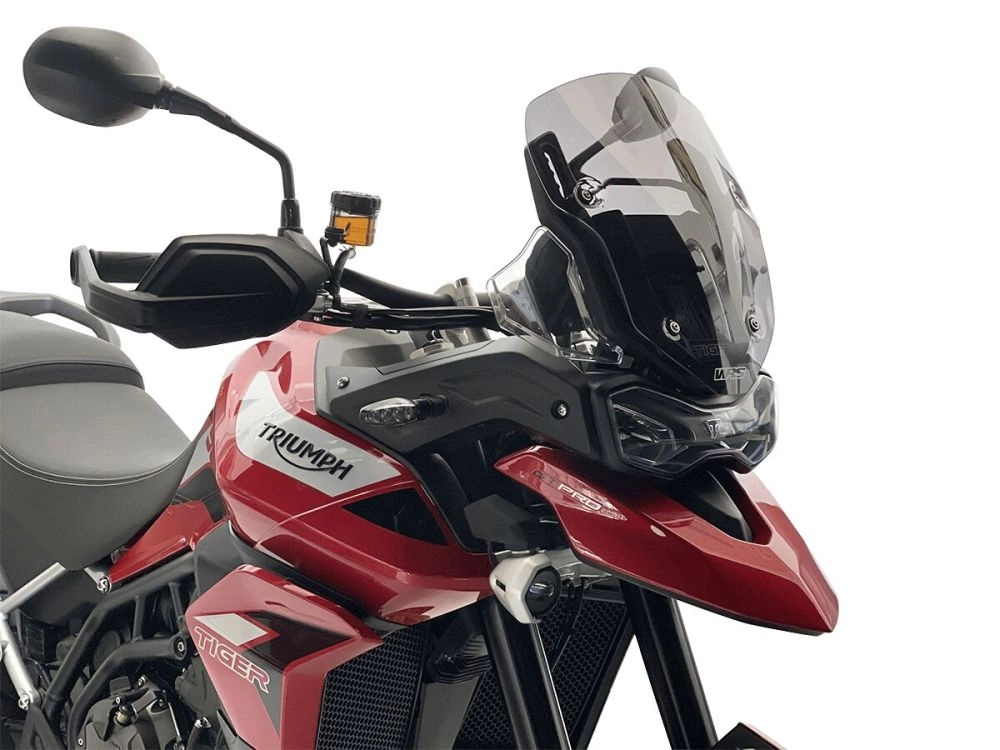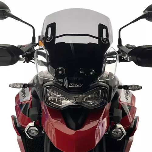Bulle WRS Sport Triumph TIGER 900 Fumée Noir réalisée en plexiglas PMMA de haute qualité. Les turbulences gênantes sur les épaules et le casque sont éliminées. Protection accrue offerte par la bulle. S'intègre parfaitement à la ligne de la moto pour un look encore plus attrayant.