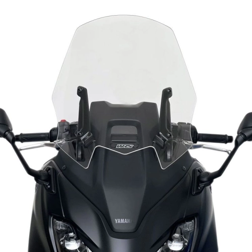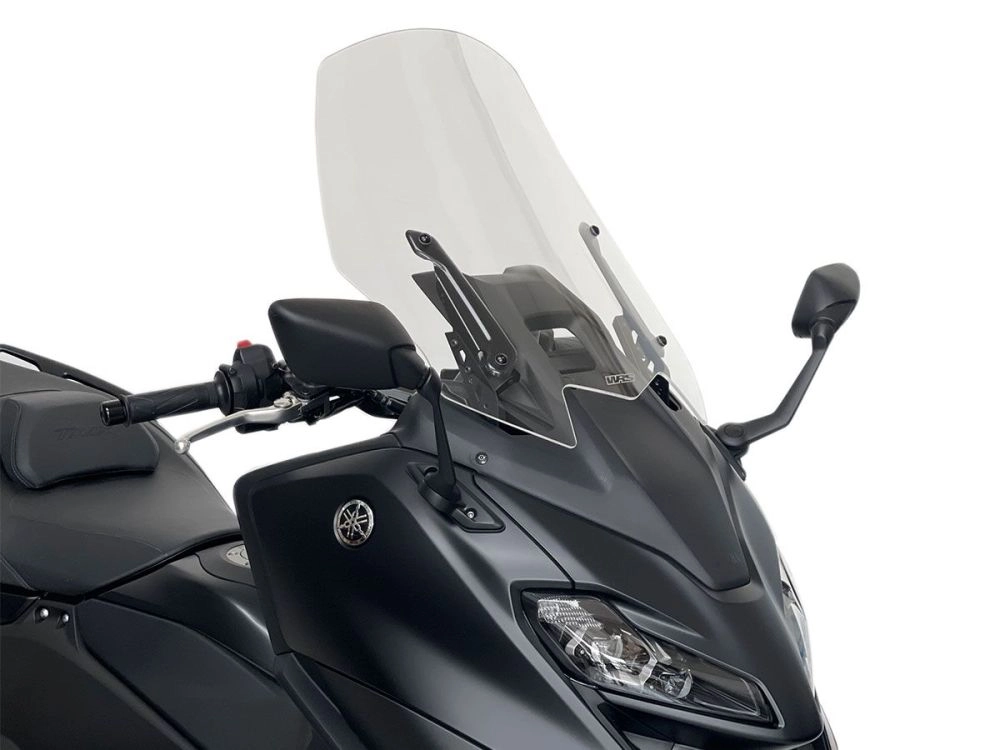 Bulle WRS Touring Yamaha TMAX560 Transparente fabriquée en plexiglas PMMA de haute qualité. Les turbulences gênantes sur les épaules et le casque sont éliminées. S'intègre parfaitement à la ligne de la moto pour un look encore plus séduisant.