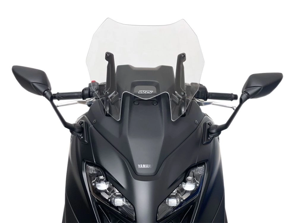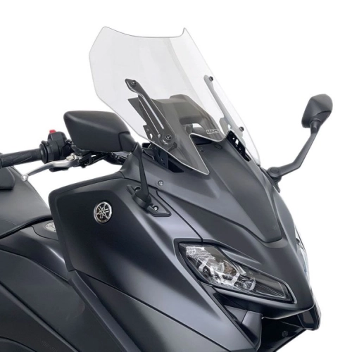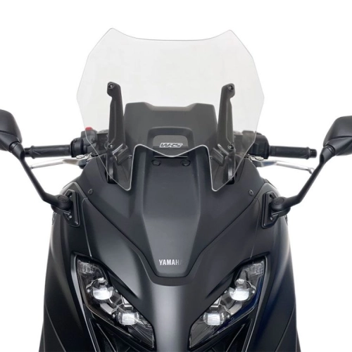 Bulle WRS Intermedio Yamaha TMAX560 Transparente fabriquée en plexiglas PMMA de haute qualité. Les turbulences gênantes sur les épaules et le casque sont éliminées. S'intègre parfaitement à la ligne de la moto pour un look encore plus séduisant.