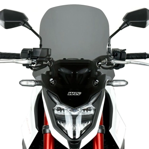 Bulle WRS Touring Honda CB750 HORNET Fumée Noir réalisée en plexiglas PMMA de haute qualité. Les turbulences gênantes sur les épaules et le casque sont éliminées. Protection accrue offerte par la bulle. S'intègre parfaitement à la ligne de la moto pour un look encore plus attrayant.