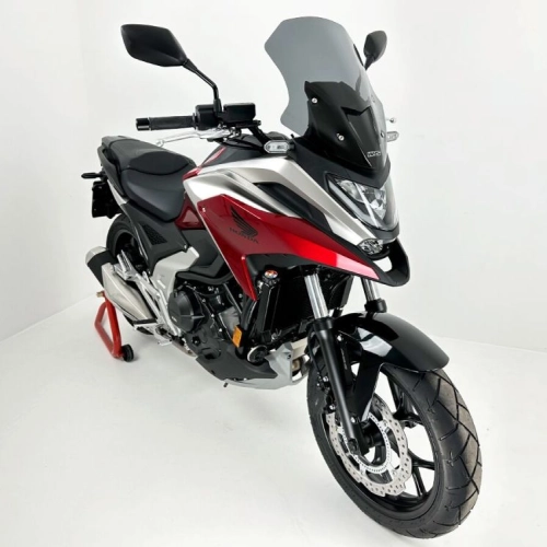 Bulle WRS Touring Honda NC750X Fumée réalisée en plexiglas PMMA de haute qualité. Les turbulences gênantes sur les épaules et le casque sont éliminées. Protection accrue offerte par la bulle. S'intègre parfaitement à la ligne de la moto pour un look encore plus attrayant.
