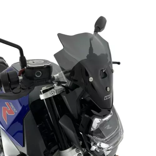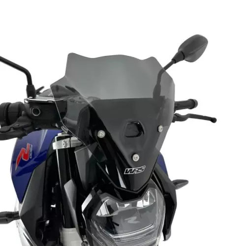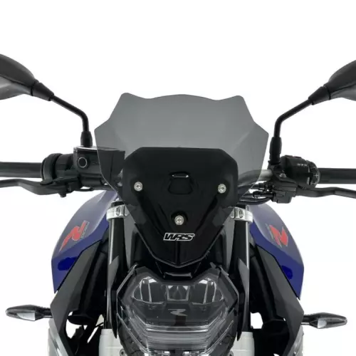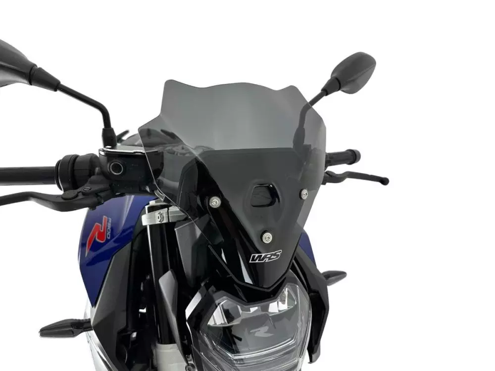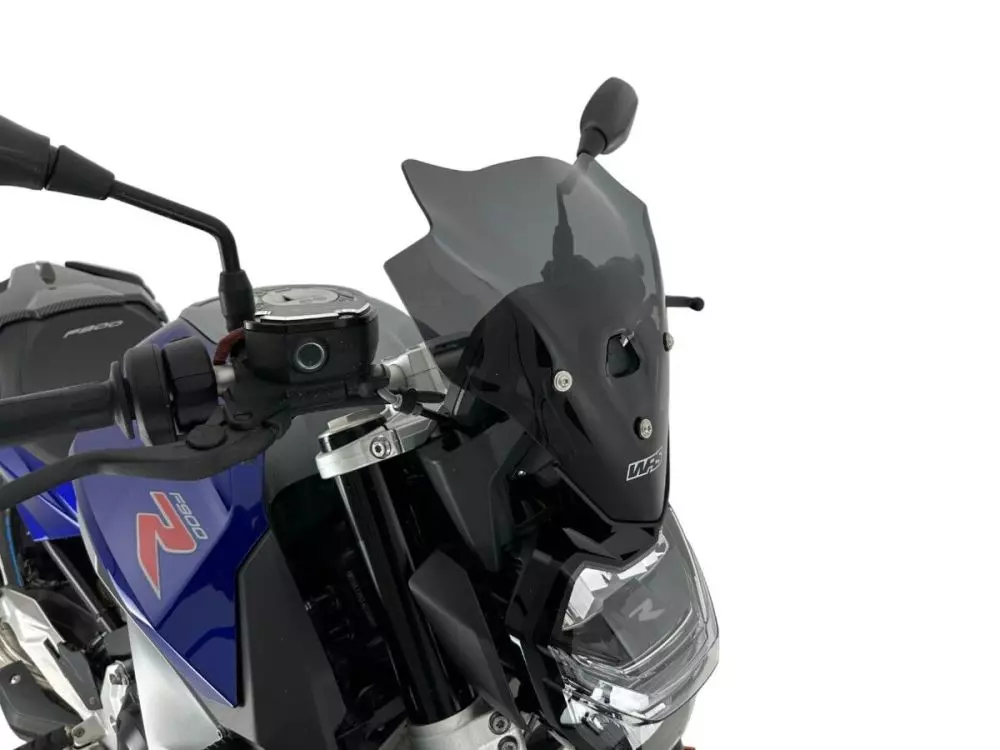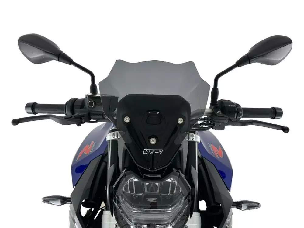 Bulle WRS Touring BMW F900R Fumée Noir réalisée en plexiglas PMMA de haute qualité. Les turbulences gênantes sur les épaules et le casque sont éliminées. Protection accrue offerte par la bulle. S'intègre parfaitement à la ligne de la moto pour un look encore plus attrayant.