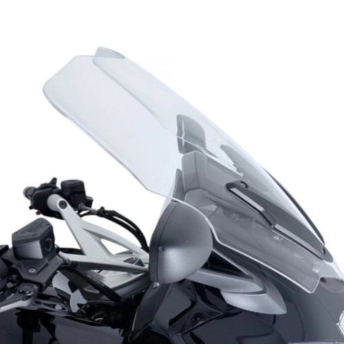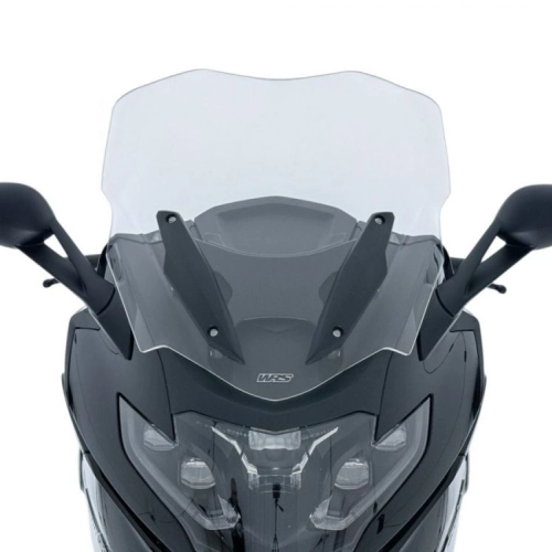 Bulle WRS Touring BMW K 1600 Transparente de haute qualité, épaisseur 5 mm. Grâce à cette bulle, les turbulences gênantes sur le casque et l'air sur les épaules sont éliminés, assurant une protection même lors de longs trajets. Version Touring, 4 cm Plus haute que l'origine et Plus large au-dessus des déflecteurs, idéale pour le froid, parfaite pour les longs trajets, protection maximale contre le vent, pour grands gabarits. Le design, étudié dans les moindres détails, s'intègre parfaitement aux lignes de la moto.