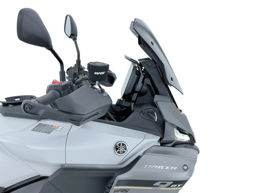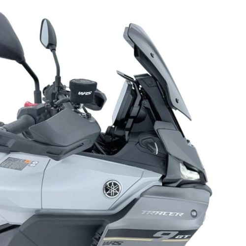 Bulle WRS Sport Yamaha Tracer R9 GT/GT+ Fumée Noir, fabriquée en plexiglas PMMA de haute qualité, épaisseur 4 mm. Grâce à cette bulle, les turbulences gênantes sur le casque ainsi que l'air sur les épaules sont éliminés, offrant une protection optimale même sur les longs trajets. Même le passager profite d'un confort maximal grâce à la protection accrue offerte par la bulle Touring. Le design, étudié dans les moindres détails, s'intègre parfaitement à la ligne de la moto pour un look encore plus séduisant. Kit de montage inclus (silentblocs en H, entretoise inox avec illet ø5 pour 4 mm d'épaisseur, vis Allen à bride en acier noir). Ce kit garantit l'adhérence parfaite du pare-brise au silentbloc central du support, réduisant ainsi les vibrations.