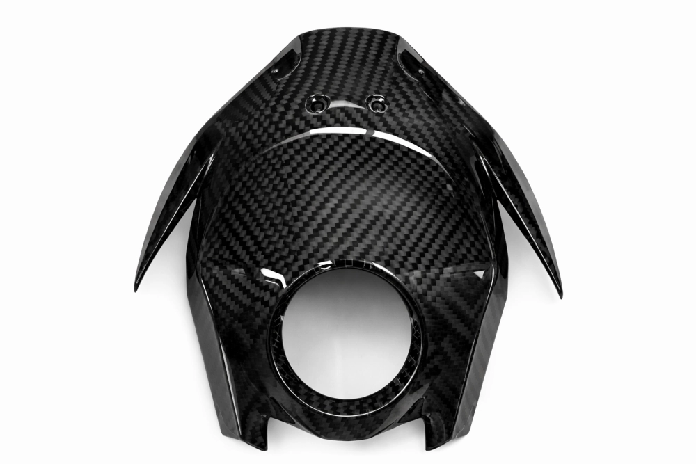 Cache réservoir carbone Honda CB1000 SP HORNET , livré sans visserie ou autres fixations. Les perçages sont déjà effectués sur les carénages moto en carbone.